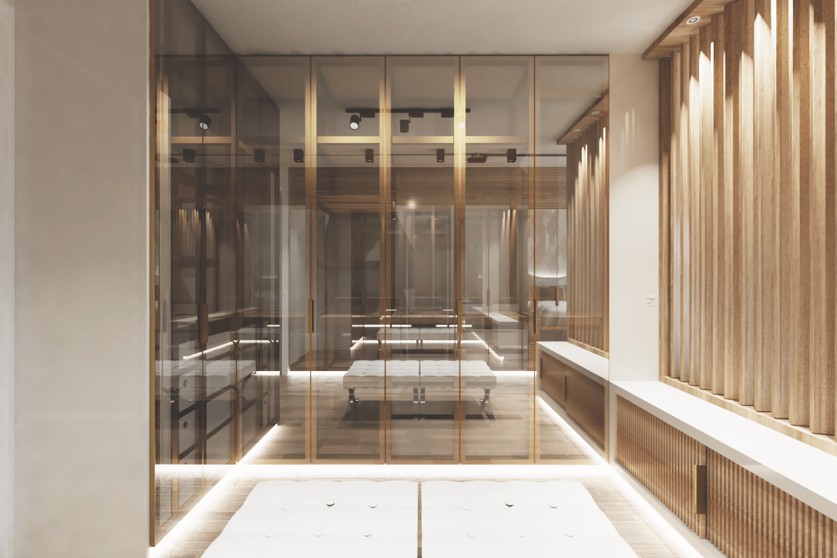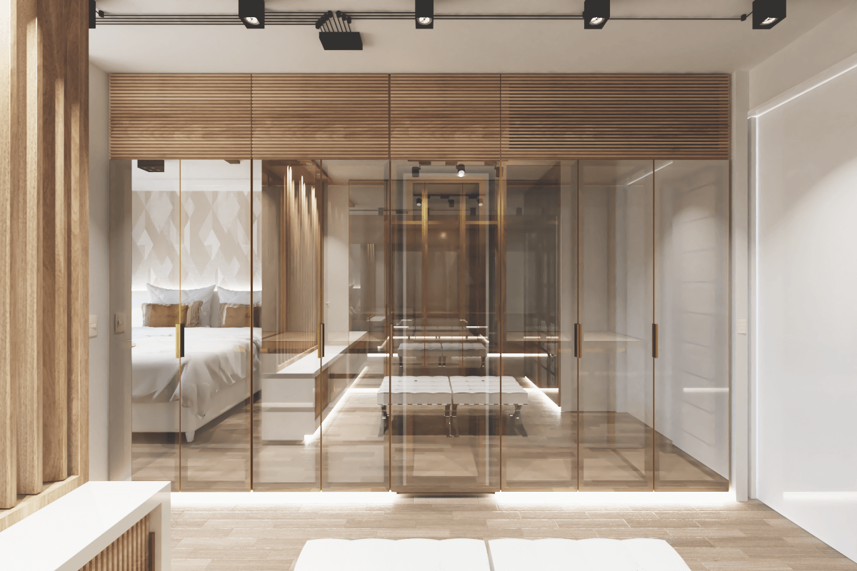 O projeto Espaço Sheron é uma transformação luxuosa e funcional da suíte principal de uma residência em um renomado condomínio de Porto Alegre. Este projeto de interiores foi idealizado para uma mulher solteira com uma filha, que buscava maximizar o armazenamento e garantir mais privacidade em seu dormitório.